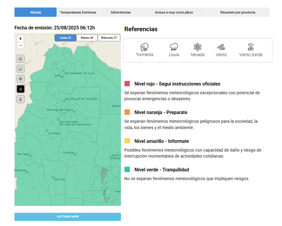 La pauta general para la última semana de agosto expone que a pesar de esas mañanas frías, gracias al resto de factores meteorológicos mencionados, las máximas que se manifestarán pasado el mediodía alcanzarán más de 23°C. Afortunadamente ya no rigen alertas de nigún tipo para la región.
