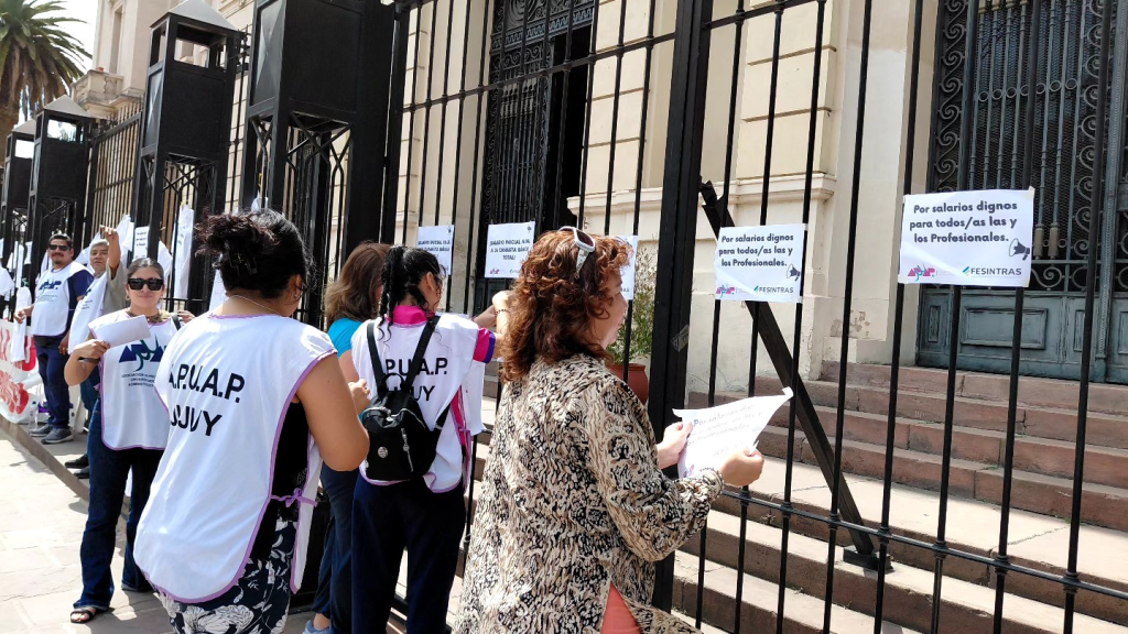 La Asociación de Profesionales Universitarios de la Administración Pública (APUAP) llevó adelante este viernes un paro con asistencia y retiro en toda la provincia, en rechazo al último ofrecimiento salarial del Gobierno jujeño correspondiente a una mejora de 2,5% respecto de octubre.