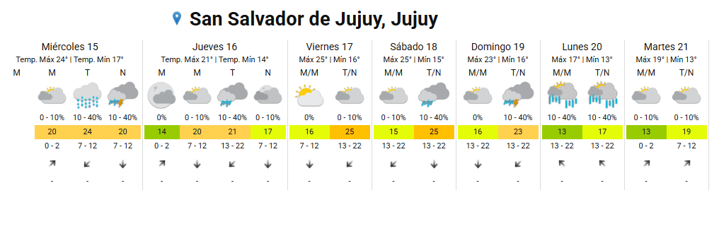 Ascenso de temperatura y probabilidad de lluvias hacia la noche en San Salvador de Jujuy