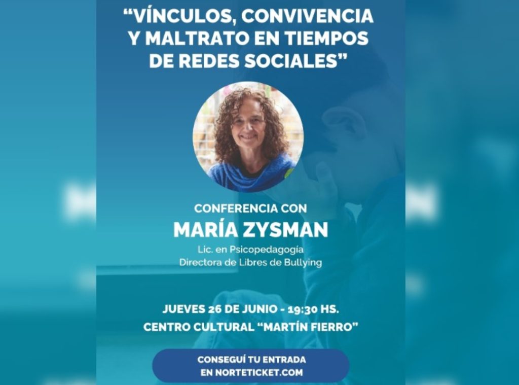 La actividad destacada de esta semana será el jueves 26 de junio a las 19:30, con la llegada de la reconocida María Zysman, licenciada en psicopedagogía y directora del programa Libres de Bullying. La profesional brindará una charla-conferencia titulada «Vínculos, convivencias y maltratos en tiempos de redes sociales», una temática crucial en la era digital.
