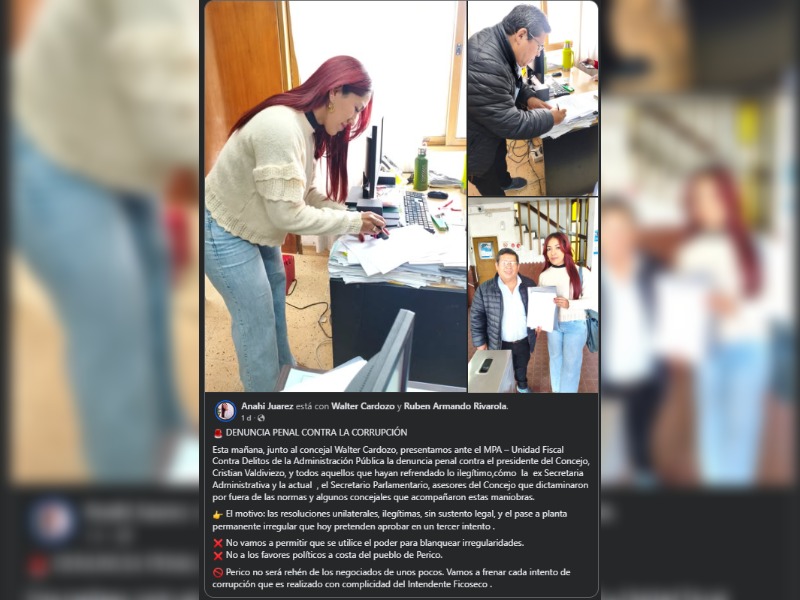 El hecho ocurrió alrededor de las 6 de la mañana, casualidad o no, horas después de que Cardozo y su par Anahí Juárez presentaran una denuncia penal contra el presidente del Concejo Deliberante, Cristian Valdiviezo, por supuestas irregularidades en la designación de “cargos fantasmas” y nombramientos ilegales.