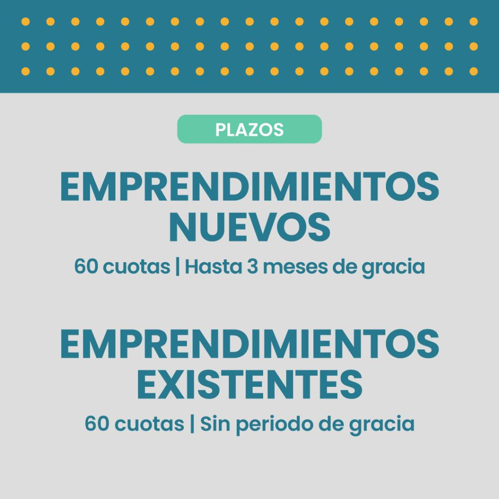 En el caso de emprendimientos nuevos, se contempla un período de gracia de tres meses, mientras que para proyectos ya en marcha la devolución suele comenzar al mes siguiente, aunque existe la posibilidad de solicitar un período de gracia adicional, sujeto a evaluación.