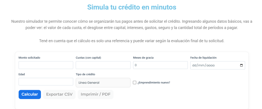 Desde la información publicada en la web oficial del Consejo de la Microempresa, se indica que el trámite puede iniciarse de manera presencial o digital, y que se encuentran disponibles dos líneas principales: Microsol y Operatoria General. También se ofrece un simulador de crédito, que permite estimar el valor de las cuotas y el esquema de pagos antes de presentar la solicitud.