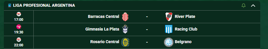 La acción de la fecha inaugural continúa este sábado 24, con tres partidos programados: desde las 17:00, Barracas Central recibe a River Plate; a las 19:30, Gimnasia y Esgrima La Plata enfrenta a Racing Club; y el cierre será a las 22:00, cuando Rosario Central se mida ante Belgrano en Arroyito, completando otro capítulo del arranque del Apertura 2026.