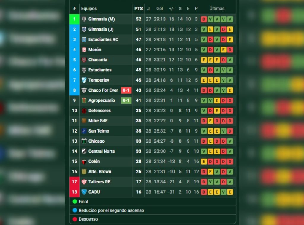 Con este resultado, Gimnasia Jujuy suma 51 puntos, quedando apenas un punto por detrás del líder Gimnasia de Mendoza, que además perdió esta fecha y vio en riesgo su liderazgo general del torneo. Los lobos deberán verse las caras en un par de partidos, probablente el encuentro más importante para ambos en lo que va del semestre.