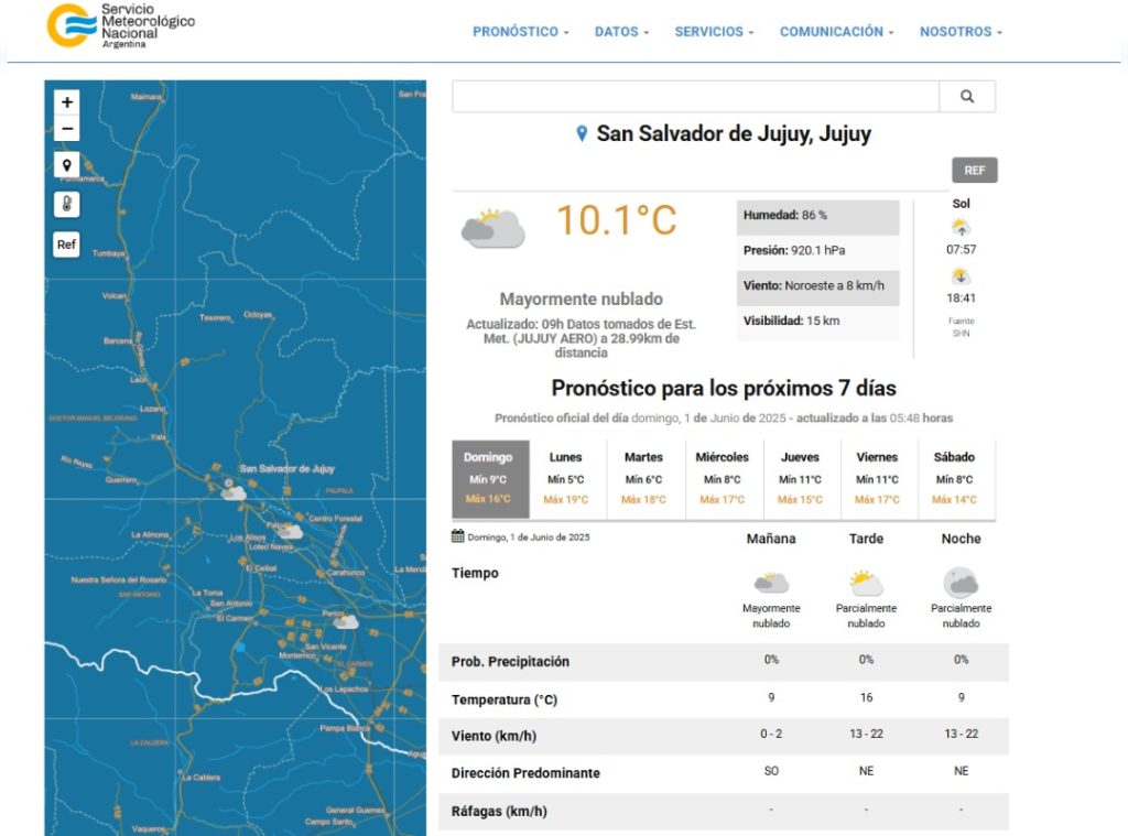 Durante la primera semana de junio, se esperan las siguientes condiciones climáticas en la capital jujeña: