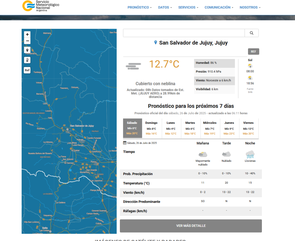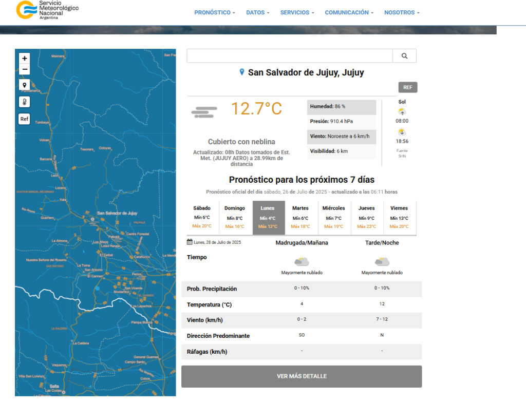 El informe del Servicio Meteorológico Nacional (SMN) para las 8.00 del corriente día, nos muestra una temperatura fresca pero todavía agradable de 12.7° a tono con el cielo nublado y los bancos de neblina que se han ido formando durante las últimas mañanas. Esas serán las condiciones sostenidas durante toda la jornada con una máxima que con suerte llegará a los 20°C.