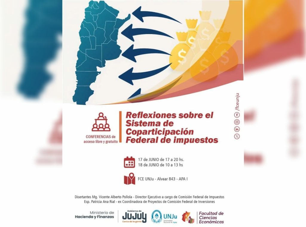 Con ese panorama y las respectivas discusiones que se están desarrollando en el seno del Congreso de la Nación, se ha convocado para los días 17 y 18 de junio, en la Facultad de Ciencias Económicas de la Universidad Nacional de Jujuy (UNJu) un ciclo de conferencias “Reflexiones sobre el Sistema de Coparticipación Federal de Impuestos”, actividad que reunirá a especialistas, académicos y autoridades para debatir uno de los pilares fundamentales del financiamiento estatal en Argentina.