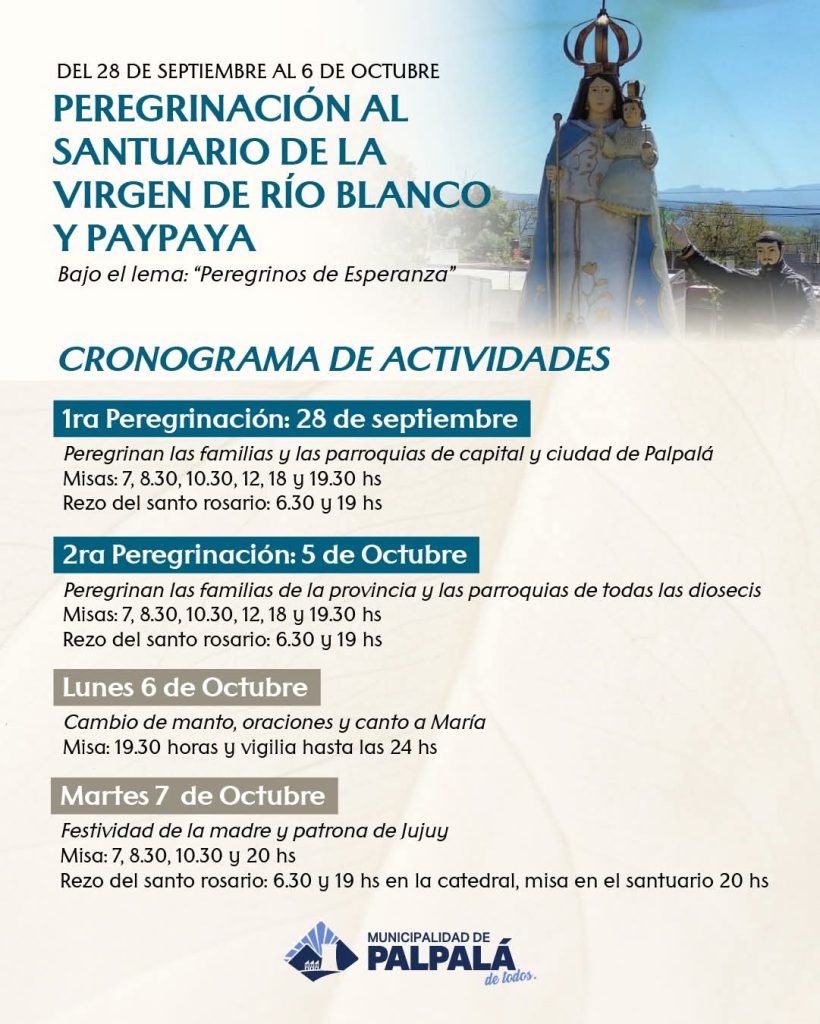 El próximo 28 de septiembre iniciará una de las expresiones de fe más convocantes de Jujuy: la tradicional peregrinación al Santuario de la Virgen de Río Blanco y Paypaya.