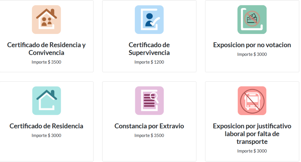 - Certificado de residencia y convivencia: $3.500