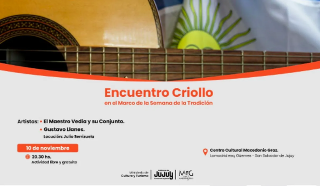 El lunes 10, a las 20:30, comenzará la programación con el “Encuentro Criollo” en el Museo Casa Macedonio Graz (Lamadrid esquina Güemes), que marcará el puntapié inicial de esta semana de celebración.