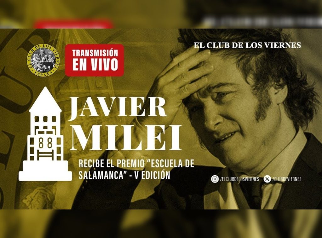 Acompañado por su hermana y secretaria general, Karina Milei, el mandatario fue reconocido con el premio “Escuela de Salamanca”, que recibió de manos de la presidenta del Club, Ana Gómez Palomo. Durante la ceremonia, ella elogió sus convicciones al decir: “Usted no es un político, usted es un hombre libre”. También participó el economista Jesús Huerta de Soto, quien ya había sido distinguido por la misma organización.