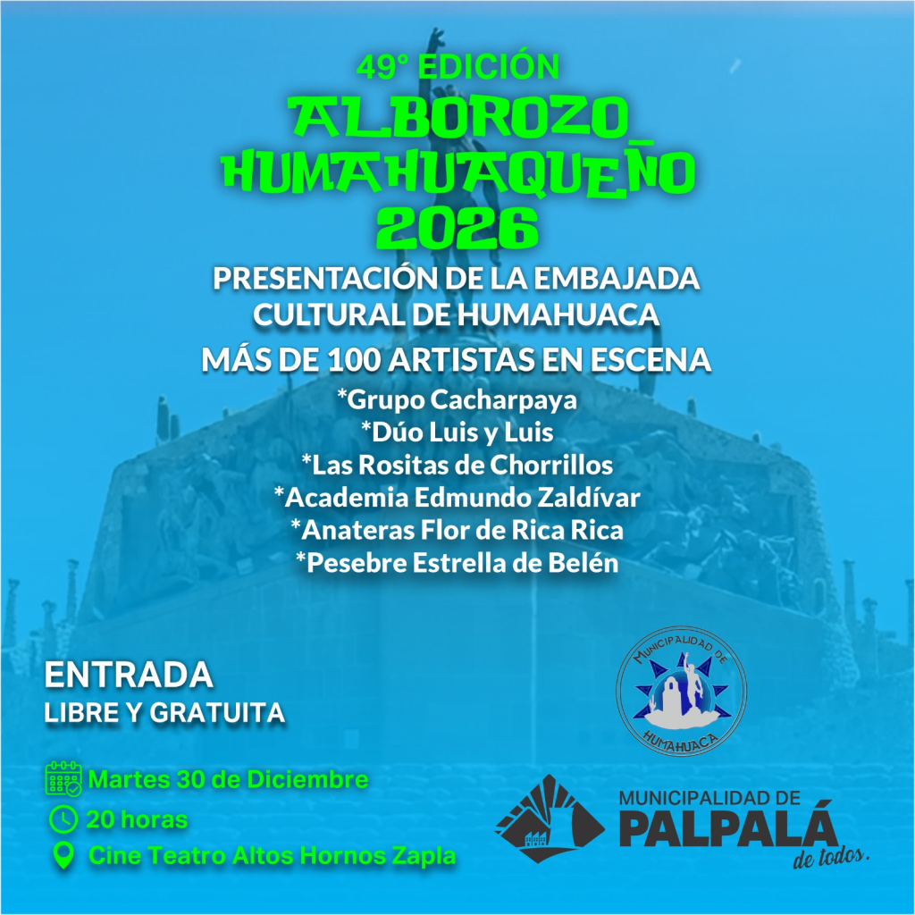 “Vamos a estar recibiendo todo lo que es el carnaval humahuaqueño acá en nuestra ciudad, a partir de las veinte, con entrada libre y gratuita”, señaló Véliz, al tiempo que remarcó que el objetivo es que toda la comunidad de Palpalá pueda disfrutar de este anticipo de El Alborozo.