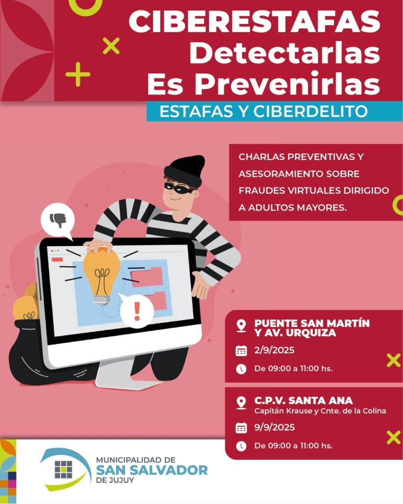 Ante el aumento de delitos virtuales en la provincia, la Municipalidad de San Salvador de Jujuy anunció un ciclo de charlas preventivas sobre ciberestafas y ciberdelitos, con especial foco en los adultos mayores, uno de los sectores más afectados por este tipo de fraudes.