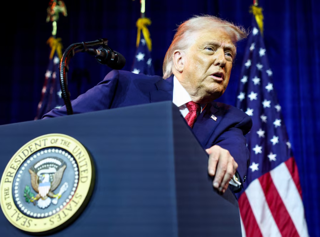 El presidente de los Estados Unidos, Donald Trump, brindó una conferencia de prensa en su residencia de Mar-a-Lago, Florida, luego…