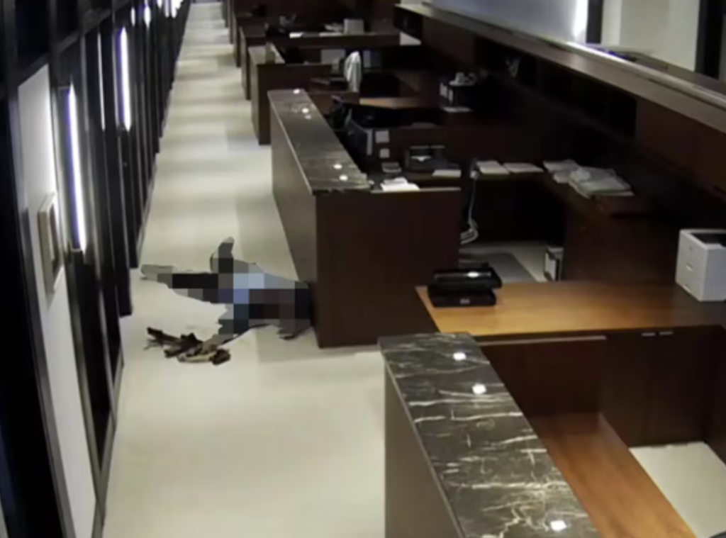 A las 6:00 p.m., se recibió el primer llamado al 911 por disparos en el edificio. Al ingresar al vestíbulo, Tamura asesinó al oficial Didarul Islam, de 36 años, quien cumplía funciones de seguridad. Luego disparó contra una mujer que intentaba esconderse y dejó a un hombre en estado crítico tras herirlo de gravedad.