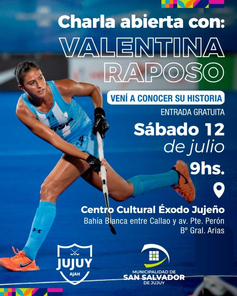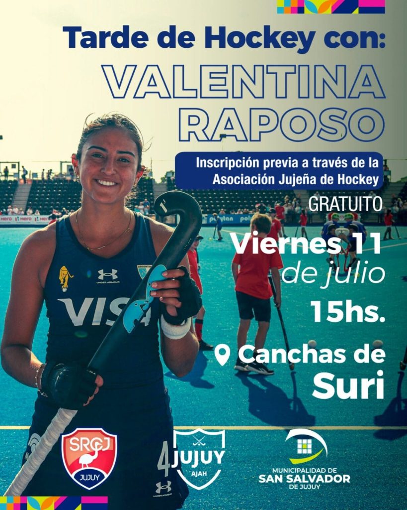 Valentina Raposo, jugadora salteña del seleccionado argentino de hockey sobre césped femenino, visitará Jujuy este fin de semana para participar de actividades abiertas y gratuitas, según informó Fabiana Menacho, presidenta de la Asociación Jujeña de Hockey.